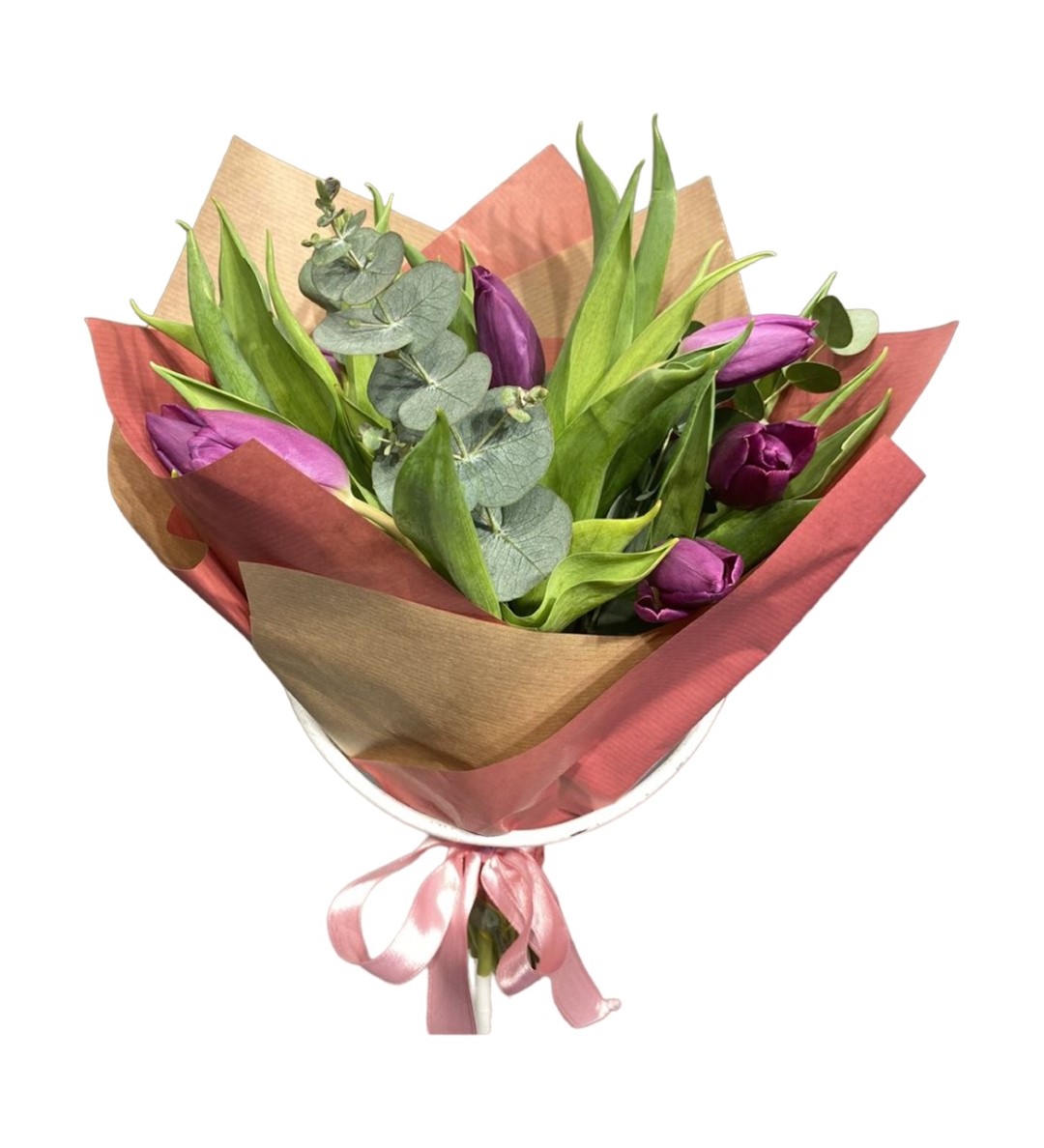 11 Purple Tulip Bouquet Eucalyptus